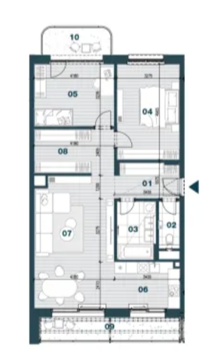 The floor plan above shows a multi-room apartment with each room numbered and measured. Having this level of detail means you'll know instantly whether that 220 cm sofa fits your living room, or whether you need the 180 cm version instead.