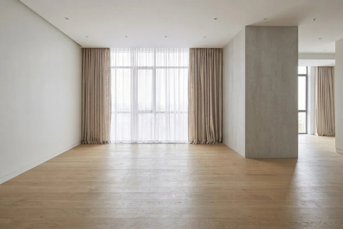 If you are moving into a new place or starting fresh, here is what the same apartment looks like completely empty. Just hardwood floors, white walls, floor to ceiling windows, and a lot of potential.