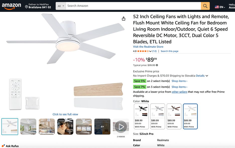 Even the ceiling fan was detected and matched: a 52-inch flush mount fan with lights and remote on Amazon for $99. MeltFlex finds everything in the room, not just the obvious pieces.