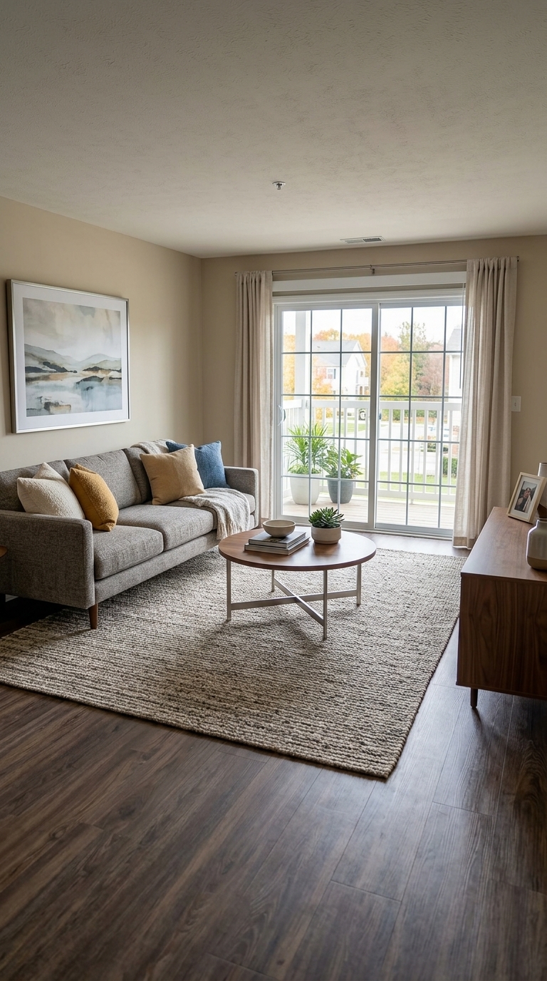 Before unpacking a single box, walk through your empty apartment and take a photo of each room. Stand in the doorway and capture the full space — window positions, wall proportions, floor color. These photos are your design foundation.