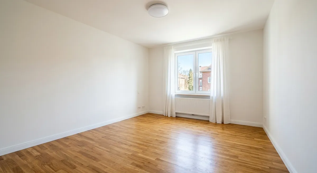 Before: An empty living room. Buyers see a box — they can’t visualize how their furniture would fit or where the sofa would go.