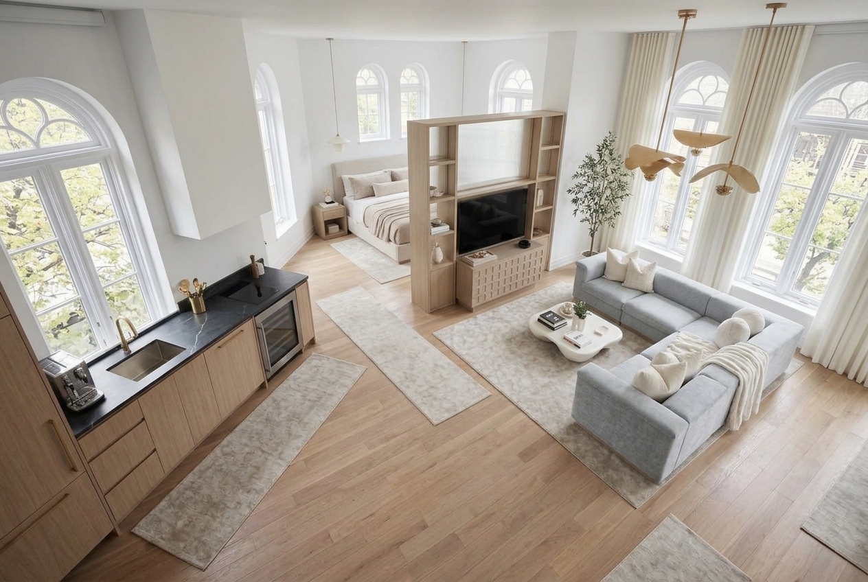 The difference between a studio that feels cramped and one that feels like a curated loft? Layout. Everything starts with how you divide and organize the space.