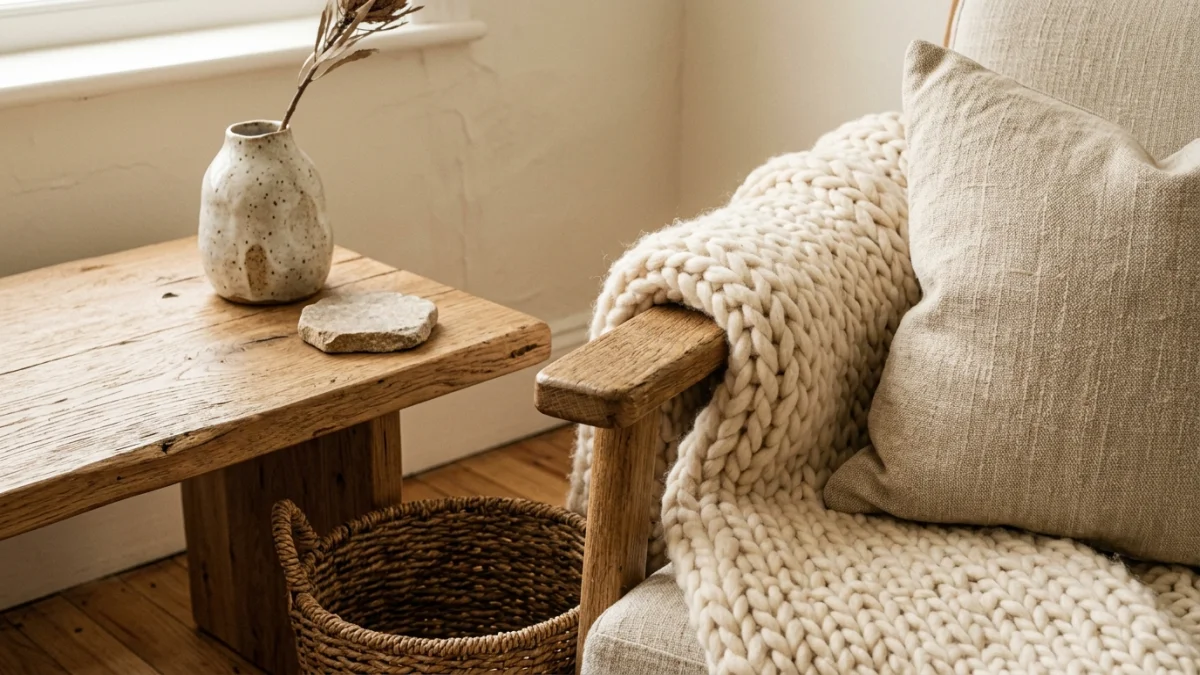 Traditional minimalism asks: “What can I remove?” Warm minimalism asks a different question: “Does everything here earn its place?” The answer isn’t fewer things. The answer is more intentional things. A handmade ceramic vase instead of a mass produced one. A wool throw blanket that you actually wrap yourself in, not one that exists purely as decoration.