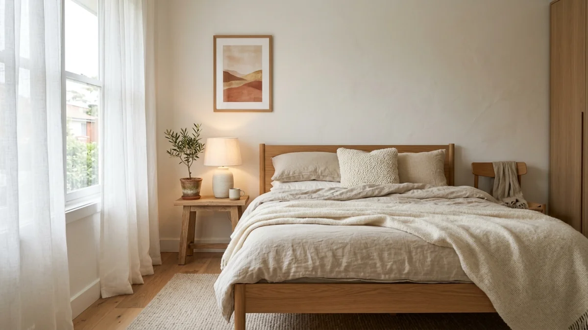 The bedroom is where warm minimalism has the most measurable impact on your life. Research from the Cleveland Clinic shows that your sleep environment directly affects sleep quality, and the principles of warm minimalism (low visual stimulation, warm tones, natural materials) align perfectly with what sleep science recommends.