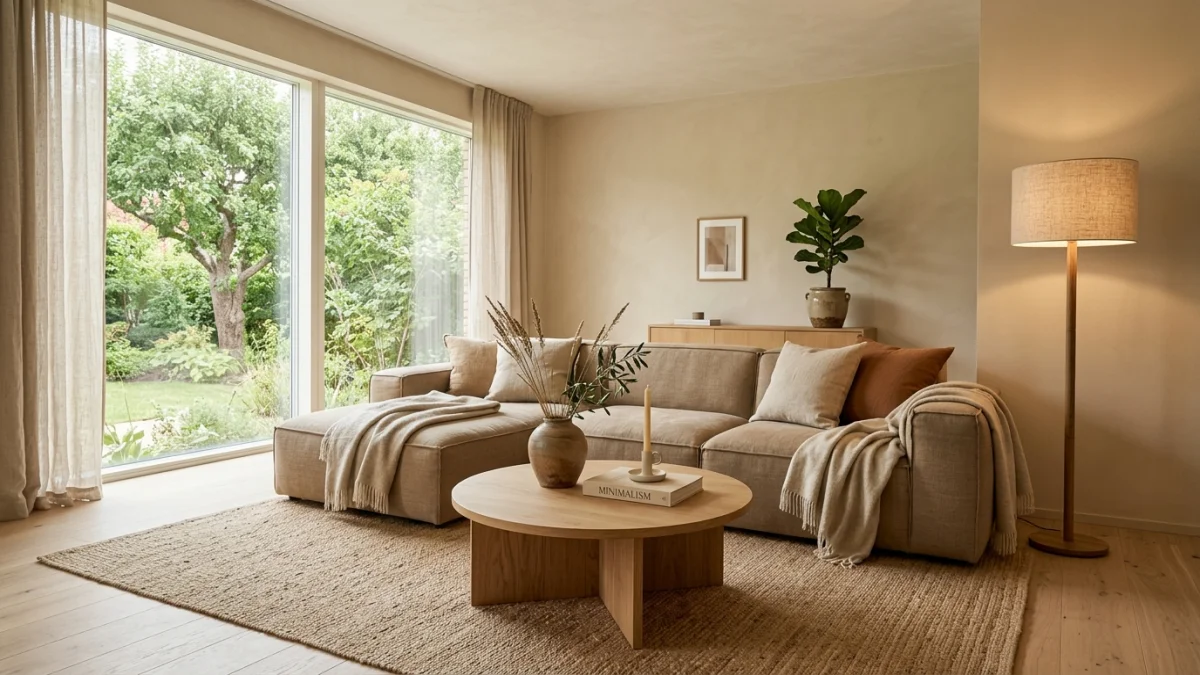 The living room is where warm minimalism shines brightest because it is the room where you need to balance “looks beautiful” with “I actually want to sit here for hours.”