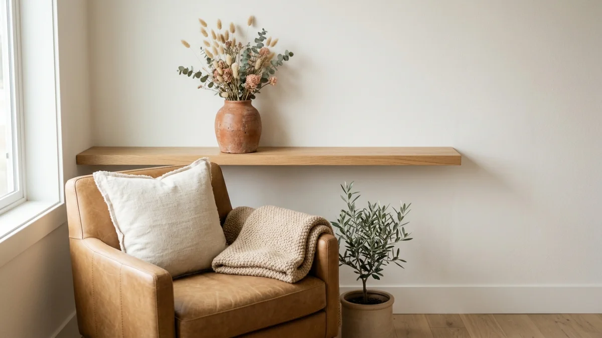 For decor, follow the rule of three: one ceramic vase, one candle, one book or small plant. That is it. The temptation is always to add more, but warm minimalism works specifically because of restraint. The warmth comes from materials and light, not from filling every surface.